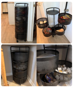 • Odnímateľné košíky z kovovej sieťky – ľahko sa čistia a sú praktické na použitie po jednom.