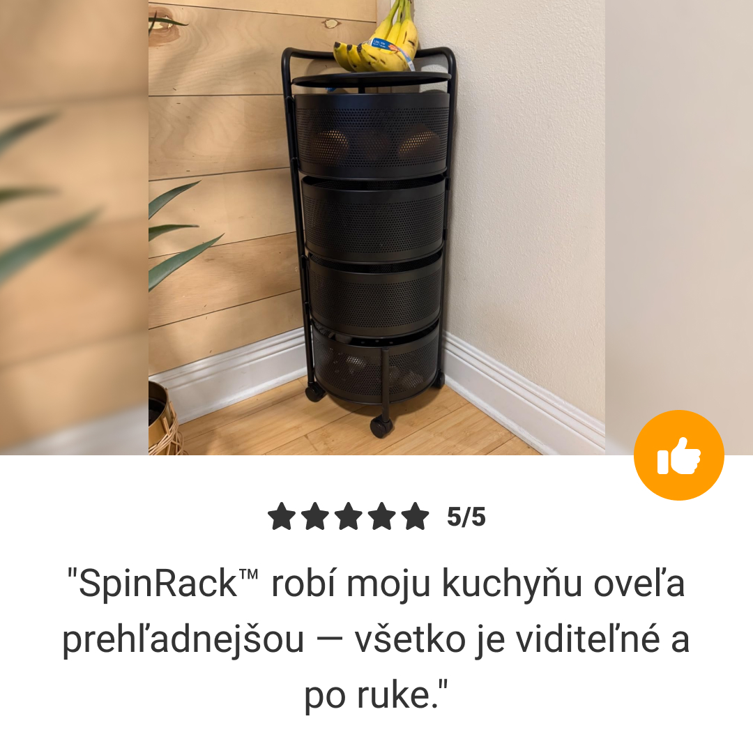 Potrebujete poriadok v kuchyni? SpinRack™ vám ponúka rotačné riešenie s 360° pre ovocie, zeleninu, domáce produkty – bez potreby montáže.